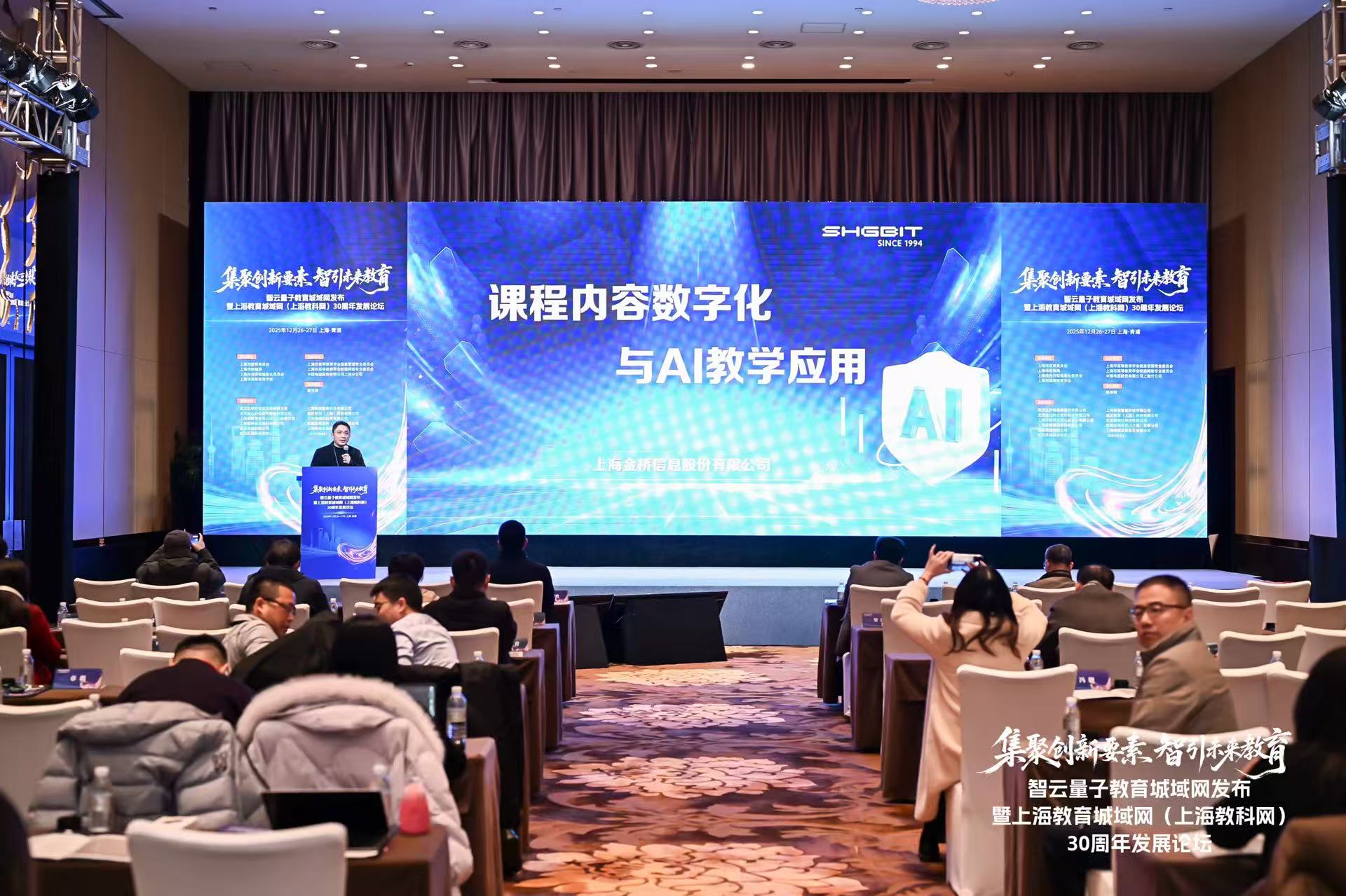 12月26~27日,由上海教育城域網(wǎng)(上海教科網(wǎng))主辦的“集聚創(chuàng )新要素 智引未來(lái)教育--智云量子教育城域網(wǎng)發(fā)布暨上海教育城域網(wǎng)(上??平叹W(wǎng))30周年發(fā)展論壇”在上海成功召開(kāi)。作為深耕智慧教育領(lǐng)域多年的數字化服務(wù)商,上海金橋信息股份有限公司受邀參與本次盛會(huì ),與來(lái)自政府、高校、企業(yè)的專(zhuān)家學(xué)者們共探教育數字化轉型與人工智能融合發(fā)展的新趨勢。